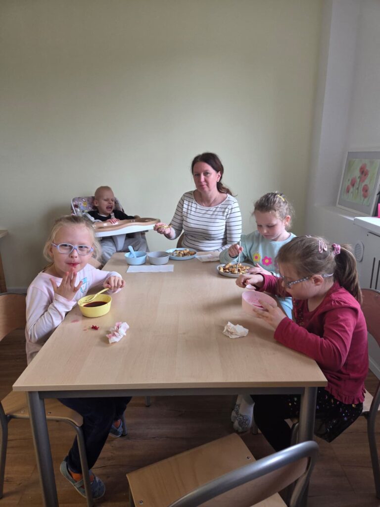 Każdy dzień w przedszkolu to mnóstwo zabawy, terapii i pysznych posiłków. Dzieci poznają nowe smaki, uczą się jeść samodzielnie, przy