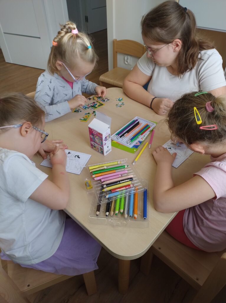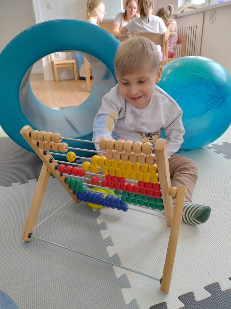 Antoś próbuje zmierzyć się z liczydłem. Dziewczynki bardzo lubią zajęcia plastyczne oraz rytmiczne. Nasza zerówka realizuje swoje zadania z Ciocią Aurelią. Natomiast Ciocia Ola pomaga przedszkolakom radzić sobie z emocjami.
