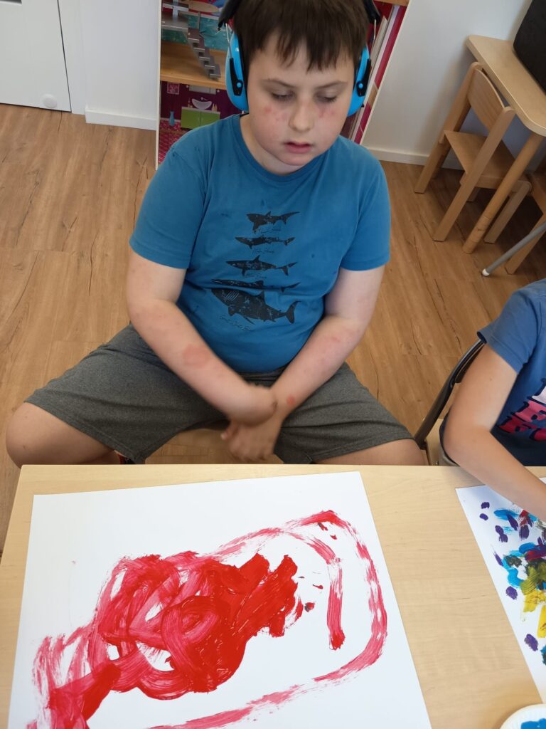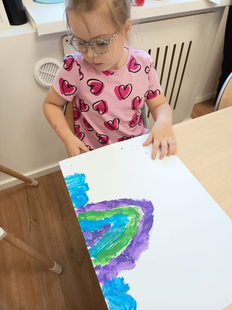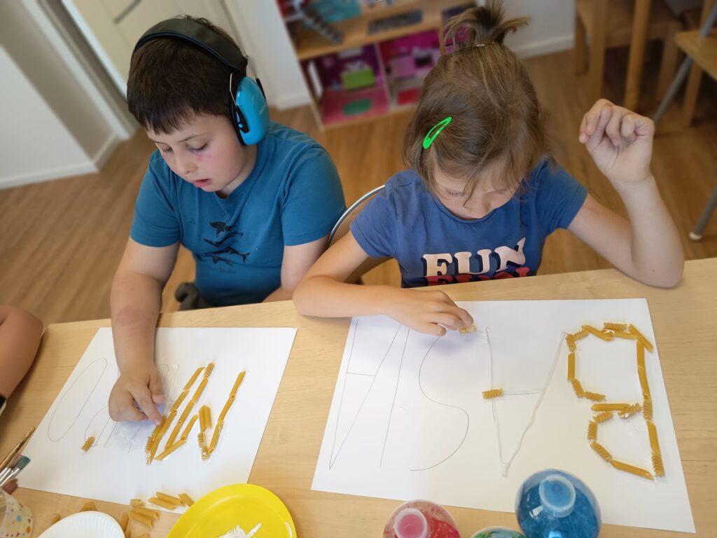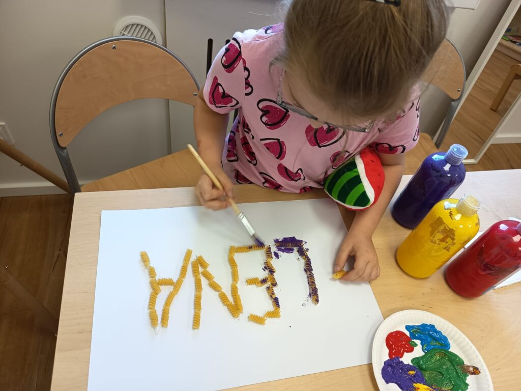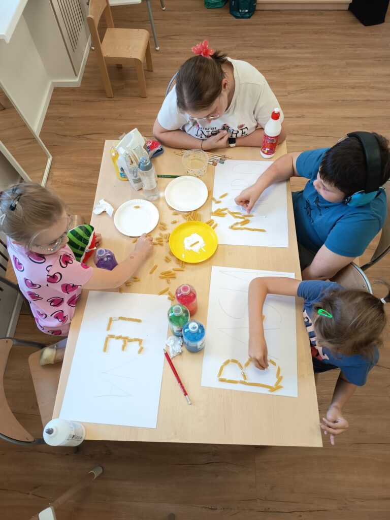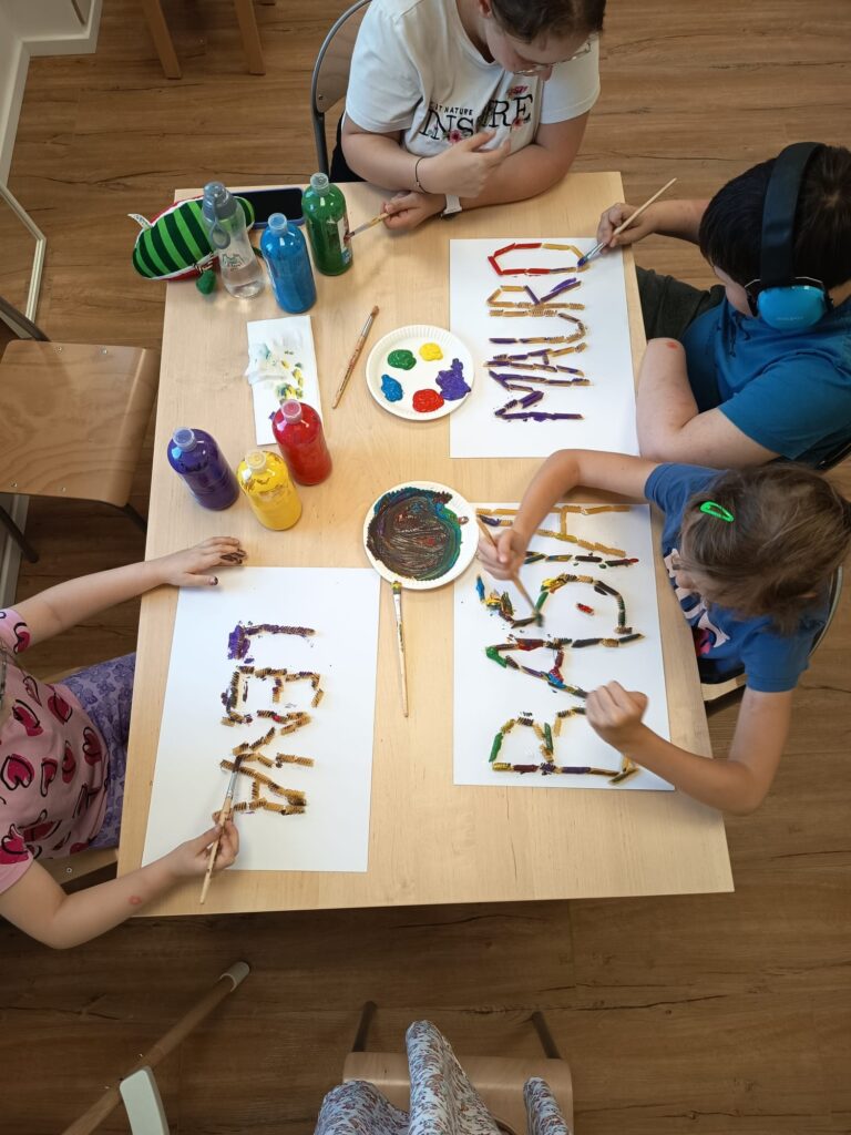 Arteterapia – malowanie burzy umożliwia dzieciom wyrażenie emocji. Po burzy dzieci stworzyły swoje makaronowe wizytówki.