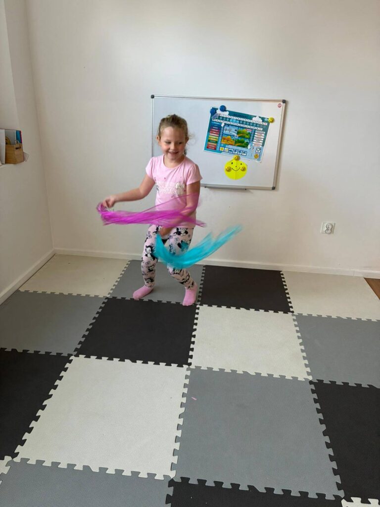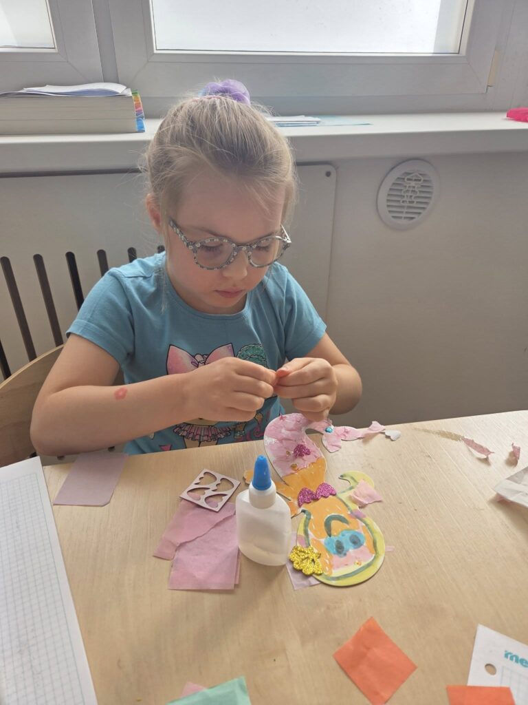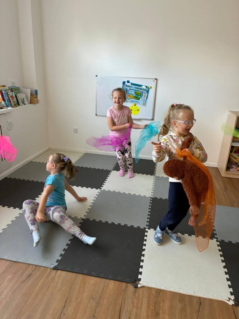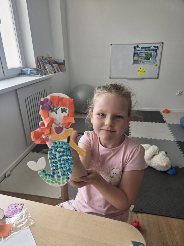 Wycinanie, malowanie, wyklejanie, z dbałością o dokładność. Powstały błyszczące syrenki i zagościła radość z własnego dzieła. Nasze przedszkolne syrenki – po pracach plastycznych – udały się na zajęcia w ruchu – tańczyły z kolorowymi chustami. Każde spotkanie z muzyką, to połączenie zabawy z nauką.