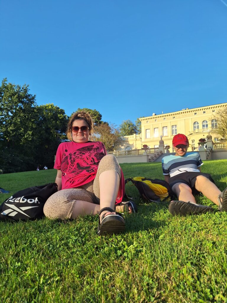 Było pięknie…. przyjemny spacer, leżenie na trawie i kawa w Pałacu. Nasi mieszkańcy nie chcieli wracać do Bydgoszczy!