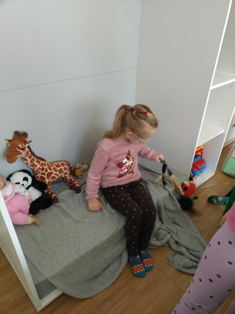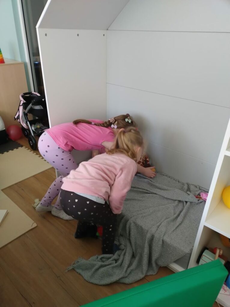 W przedszkolu dzieci spędzają dużo czasu i dobrze się w nim czują, stąd zapewne pomysł zabawy w dom.