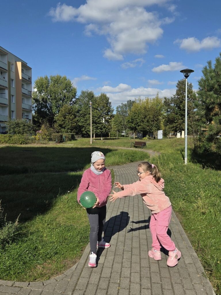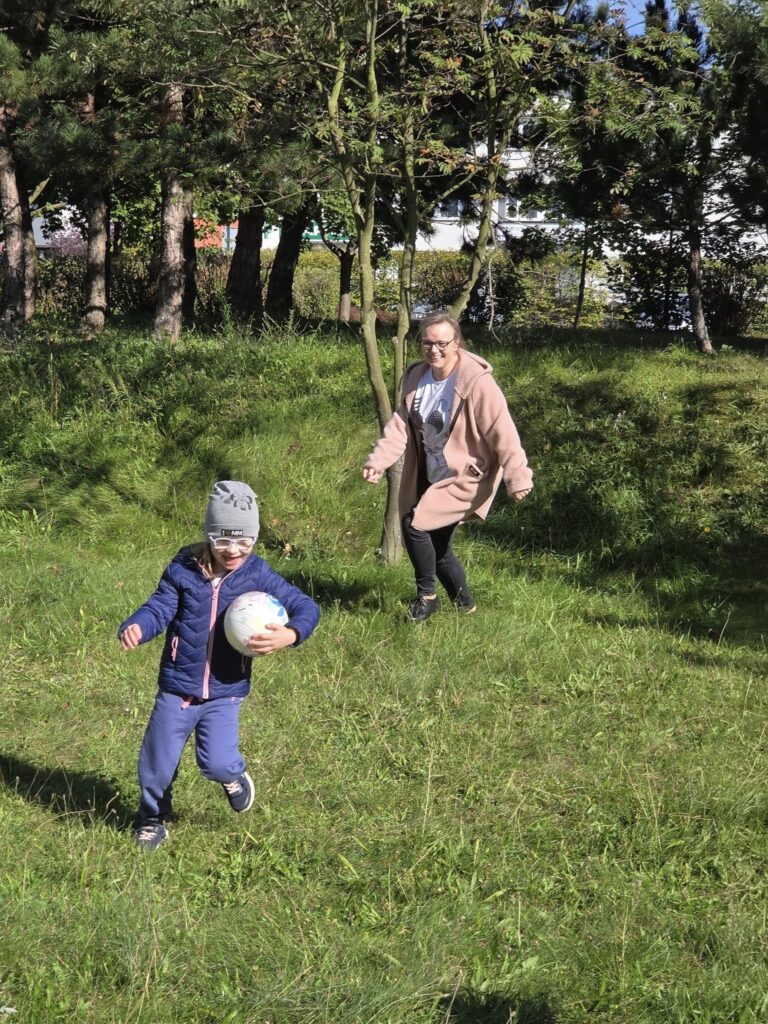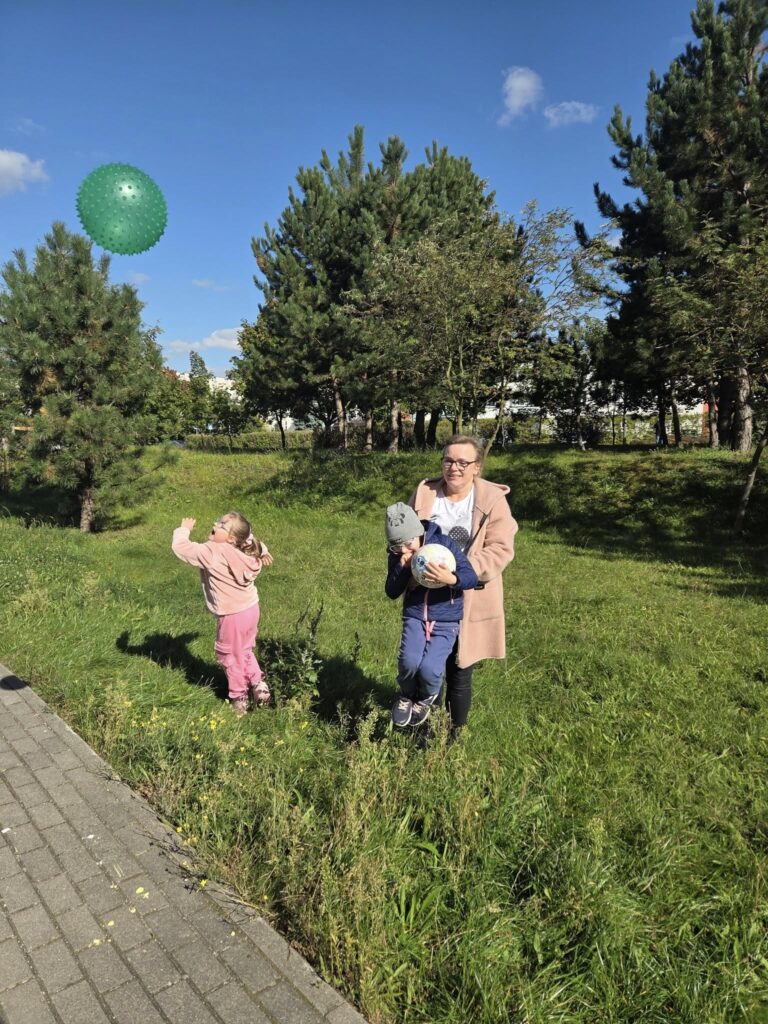 W październiku bardzo często zmienia się pogoda. Nie każdy poranek nas zachwyca. Gdy tylko w oknach naszego przedszkola pojawiają się promienie słońca, dzieci skaczą do góry z radością, z prośbą o zabawy z piłką na powietrzu.